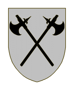 D’argent à deux hallebardes de sable en sautoir.