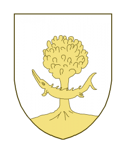 Un arbre terrassé, et un esturgeon brochant sur le tronc, en croissant montant.