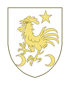 Un coq, accompagné en chef par une étoile, et de deux croissants tournés en pointe.,