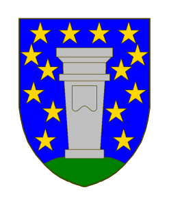 D’azur semé d’étoiles à cinq rais d’or (ou d’argent), à une stèle-colonne d’argent posée sur une terrasse de sinople.