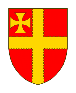 De gueules à la croix engreslée d’or, le premier canton chargé d’une croisette pattée du même.