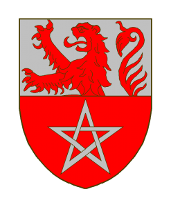 Coupé, au I d’argent au lion naissant de gueules, au II de gueules au pentalpha d’argent.