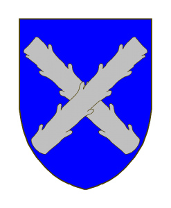 D’azur à deux chicots d’argent passés en sautoir (croix de Bourgogne).