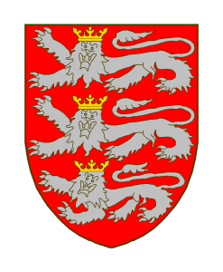 De gueules à trois léopards d’argent, couronnés d’or, passant l’un sur l’autre.