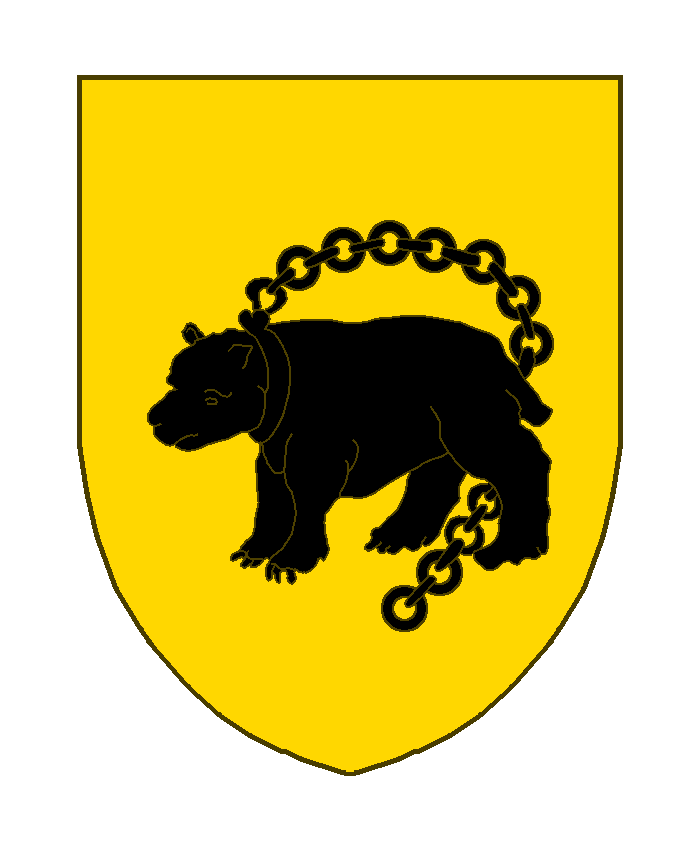 D’or à l’ours passant de sable, enchaîné.