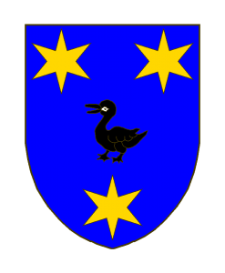 D’azur à la canette de sable accompagnée de trois étoiles à cinq rais d’or.