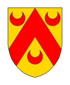 D’argent au chevron de gueules accompagné de trois croissants montants du même.