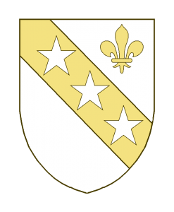 Une bande chargé de trois étoiles, surmontée d’une fleur de lis .