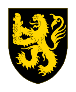 De sable au lion d’or tenant entre ses pattes un chicot du même en pal.