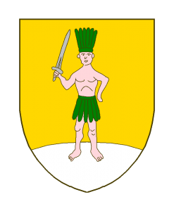 D’or au sauvage au naturel coiffé de plumes, ceint d’un pagne de plumes, tenant de la dextre une épée levée, posé sur une terrasse.