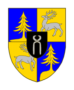 Écartelé: aux I et IV d’azur au sapin d’or, terrassé du même, aux II et III d’or au cerf passant d’argent, celui du III contourné. Sur le tout de sable à une tenaille (= Zange) d’argent posée en pal.