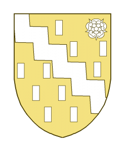 Une bande vivrée, le champ semé de billettes, une rose au chef à sénestre.