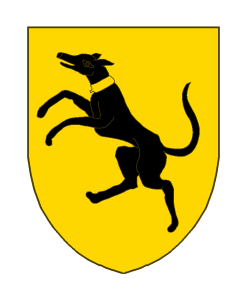 D’or au lévrier rampant ou sautillant de sable, colleté d’or.