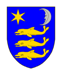 d’azur à trois dauphins d’or en fasce un sur l’autre, accompagnés en chef d’un croissant figuré d’argent tourné, adextré d’une étoile d’or à six rais.