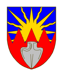 Coupé-émanché d’azur au soleil levant d’or mouvant de la partition, et de gueules au soc de charrue d’argent mis en pal.